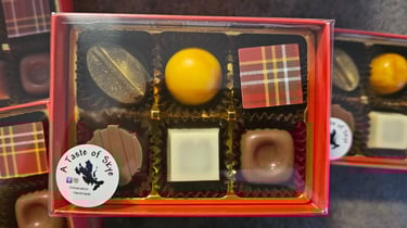 Available in 6, 12, or 24 piece boxes to suit your cravings. Customizable to your preferred fillings and flavors These handmade chocolates are a true delight for the senses. Each bite melts in your mouth, revealing layers of rich, velvety chocolate complemented by the pure, natural flavors of the Scottish Isles. Treat yourself or surprise a loved one with this indulgent Taste of Skye.