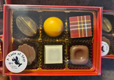 Indulge in a taste of the Scottish Highlands with our exquisite Handmade Chocolates from the Isle of Skye. Crafted in small batches using the finest Belgian chocolate. Infused with local flavors such as Talisker Whisky, Skye Roastery Espresso coffee and Isle of Skye Sea Salt caramel.